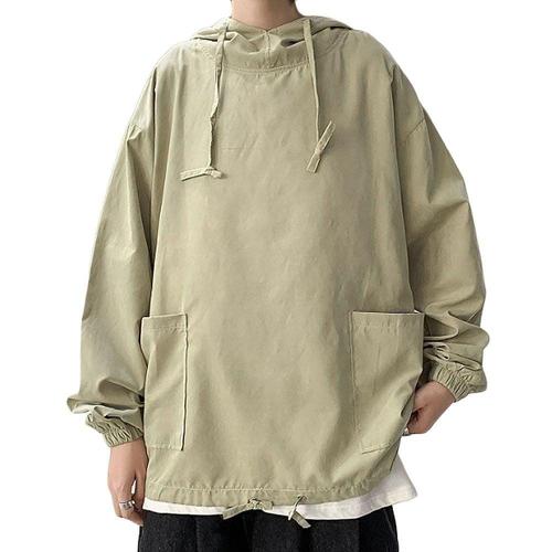 [에이치플러스몰]포켓 남자 아노락 무지 오버핏 후드 바람막이 후드티 남자후드티