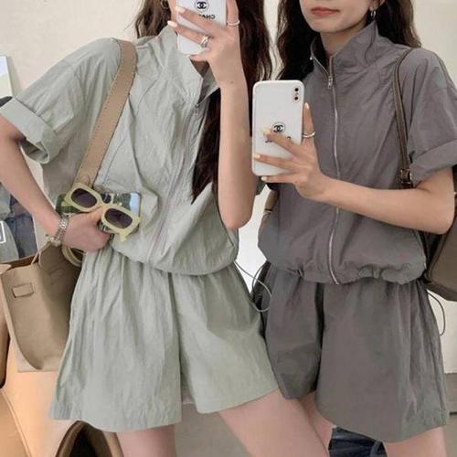 [기타]여성 데일리 반집업 반팔 아노락 반바지 세트 셋업_21182922