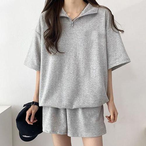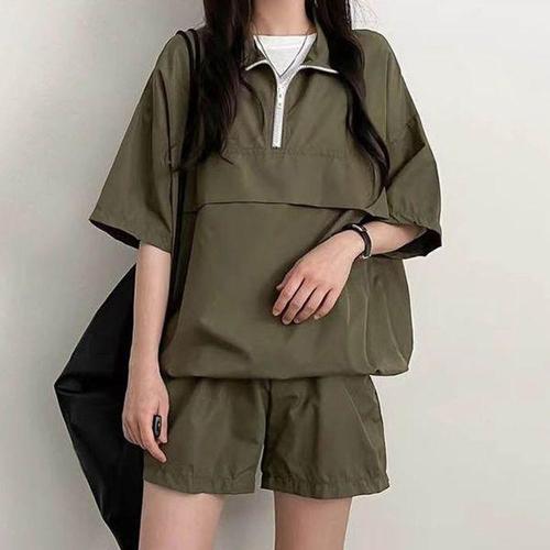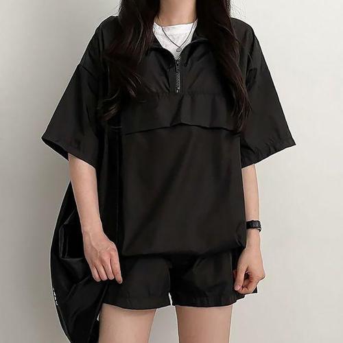 [셀러허브_여성트랜드패션]여자 반팔 아노락 캐주얼 베이직 반팔반바지세트 여자트레이닝 세트 세 아노락..
