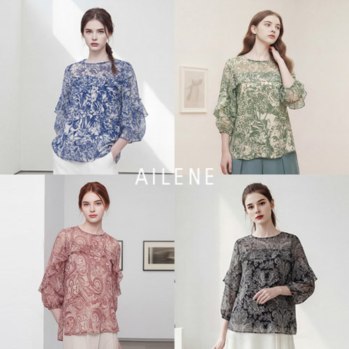 [엘렌느] 26SS 플로럴 쉬폰 프릴 블라우스 4종