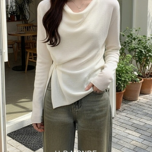 유아몽드 / 루즈핏 허리라인 원버튼 무지 긴소매 티셔츠 4color