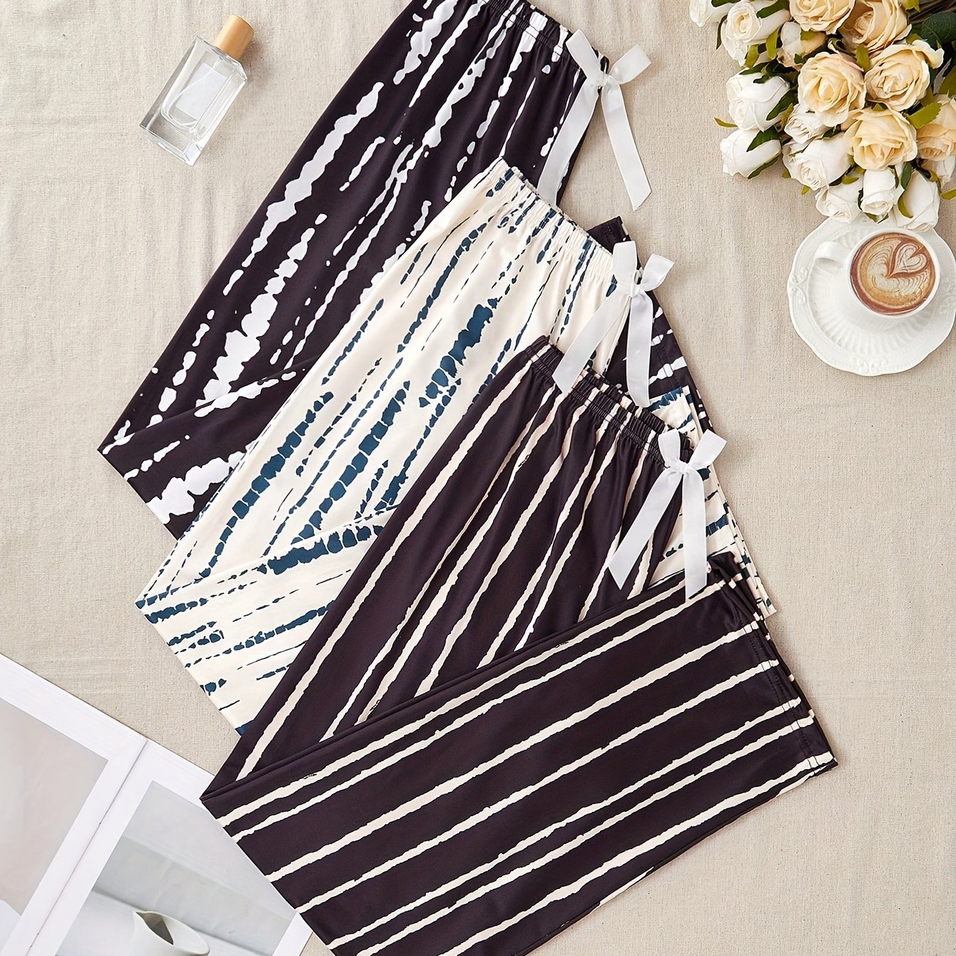 TEMU 3개 여성용 프린트 잠옷 바지 (벨트 포함) | 편안한 원단, 루즈핏, 탄성 허리, 긴 기장, 캐주얼 스타일, 모든 계절에 적합