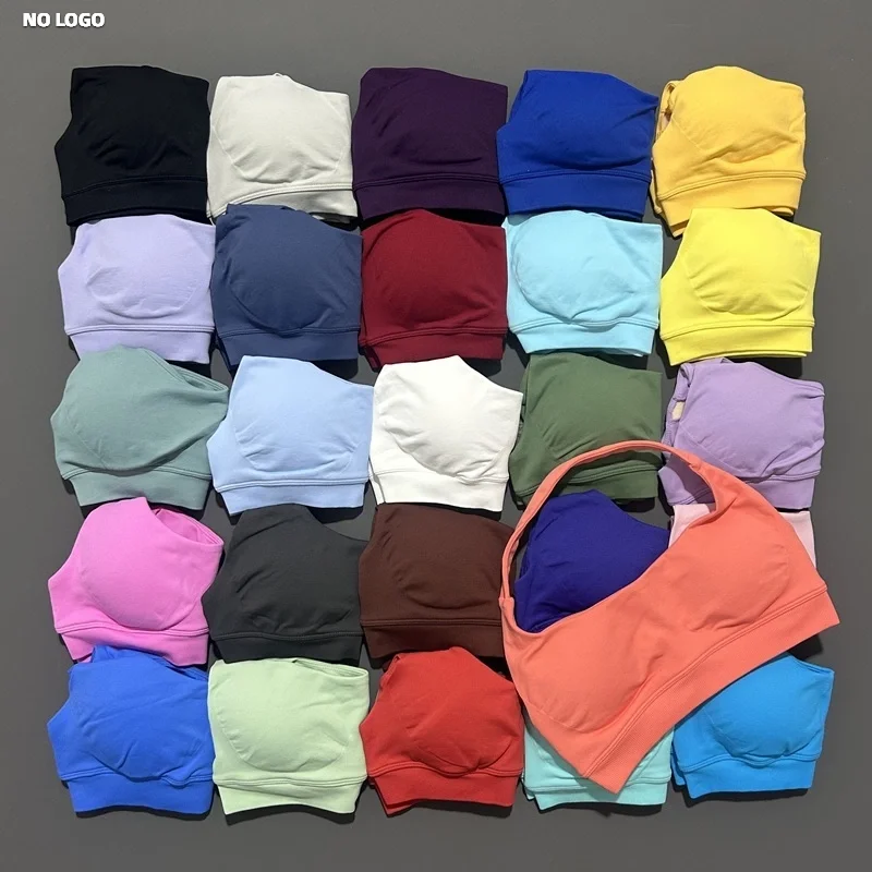로고 없는 스포츠 브라 여성용 심리스 홀터탑 하이 서포트 푸쉬업 오픈백 짐웨어 피트니스 요가 운동 속옷