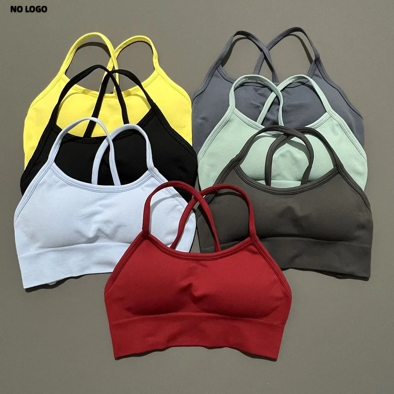 여성용 짐 탑 운동복 스트랩 탱크탑 패드 스포츠 브라 백리스 요가 셔츠 심리스 짐 크롭탑 홀터 피트니스 베스트