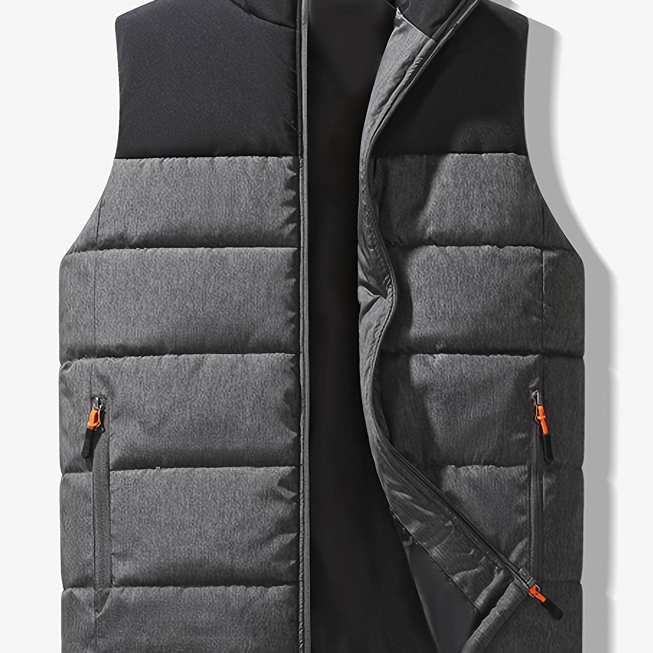 TEMU Gengyuan 남성용 두꺼운 단색 지퍼업 조끼, 스탠드 칼라 디자인으로 가을, 겨울철 따뜻하게 입기 좋습니다.