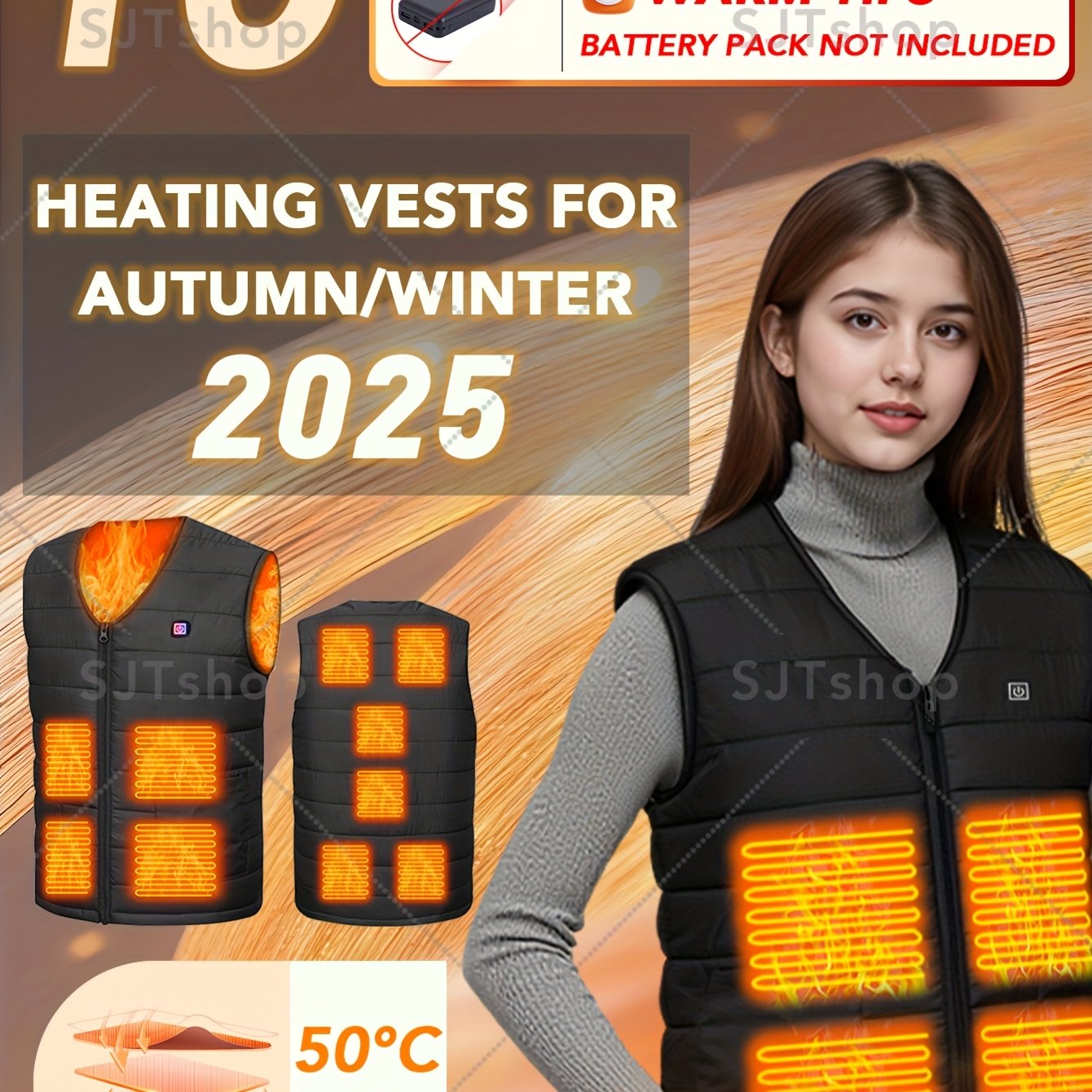 TEMU USB 충전식 스마트 보온 조끼, 남녀 공용