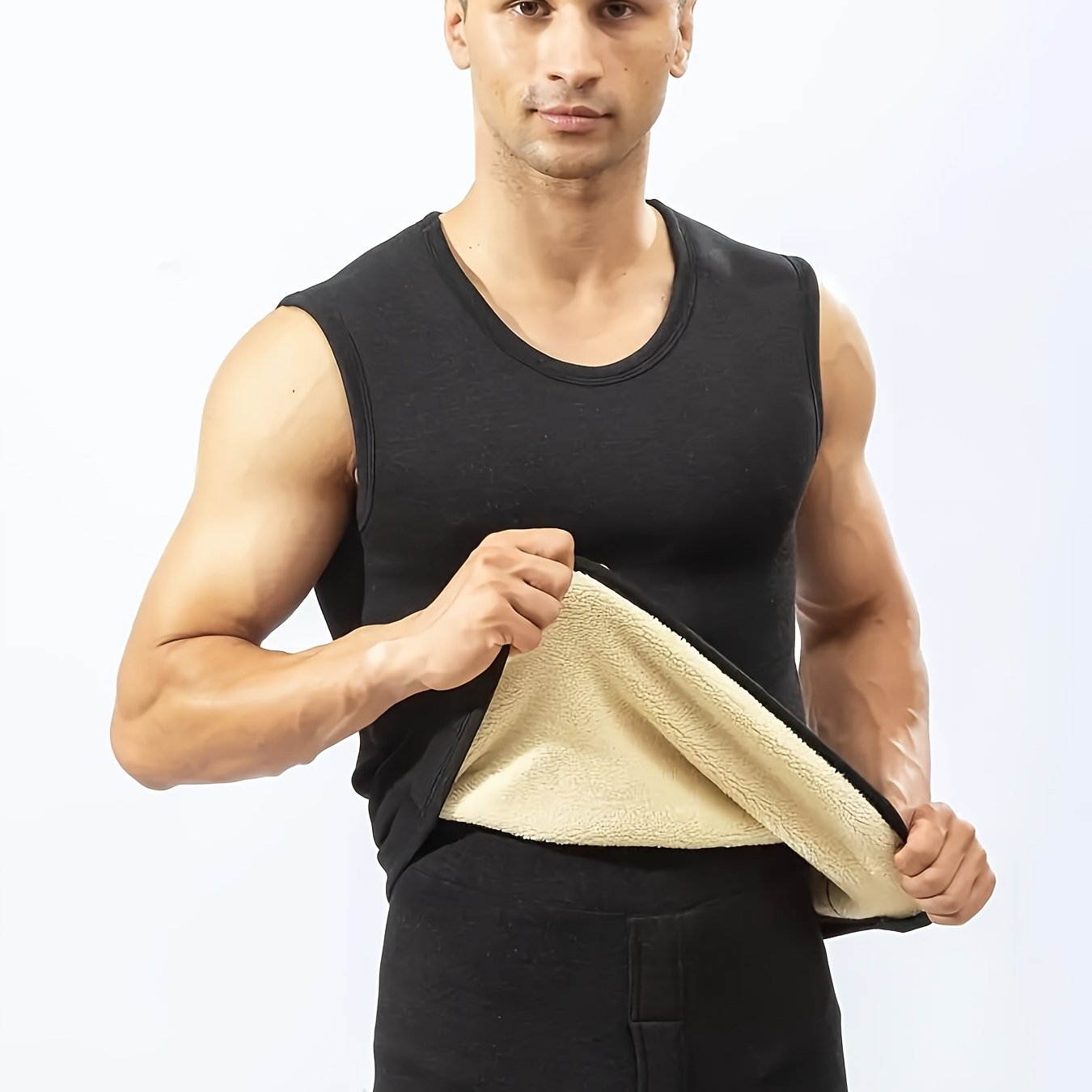 TEMU 가을 겨울 스타일 남성용 보온 조끼, 중간 신축성 소재의 슬리브리스 보온 조끼, 슬림핏 스웨트셔츠, 추운 날씨, 체육관 및 하이킹용, 극한 추위 보호 필수 레이어, 라운드 넥 디자인, 피트니스 애호가 탑