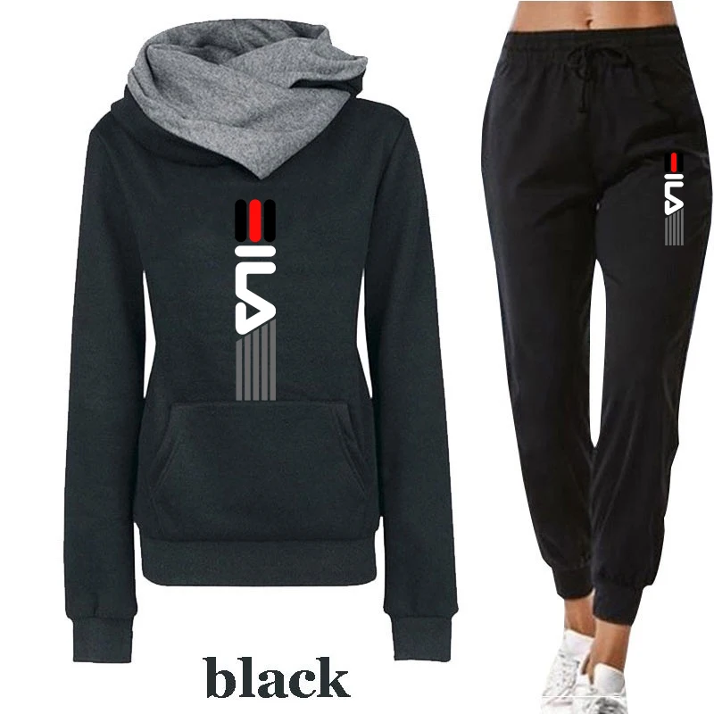봄가을 여성 후드 트레이닝복 세트 2피스 스웨트셔츠 세트 캐주얼 탑 스포츠 긴 바지 여성 플러스 사이즈 의류