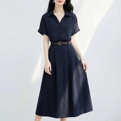 TEMU 우아하고 지적인 단색 캐주얼 루즈핏 스타일리시 기본 셔츠 원피스
