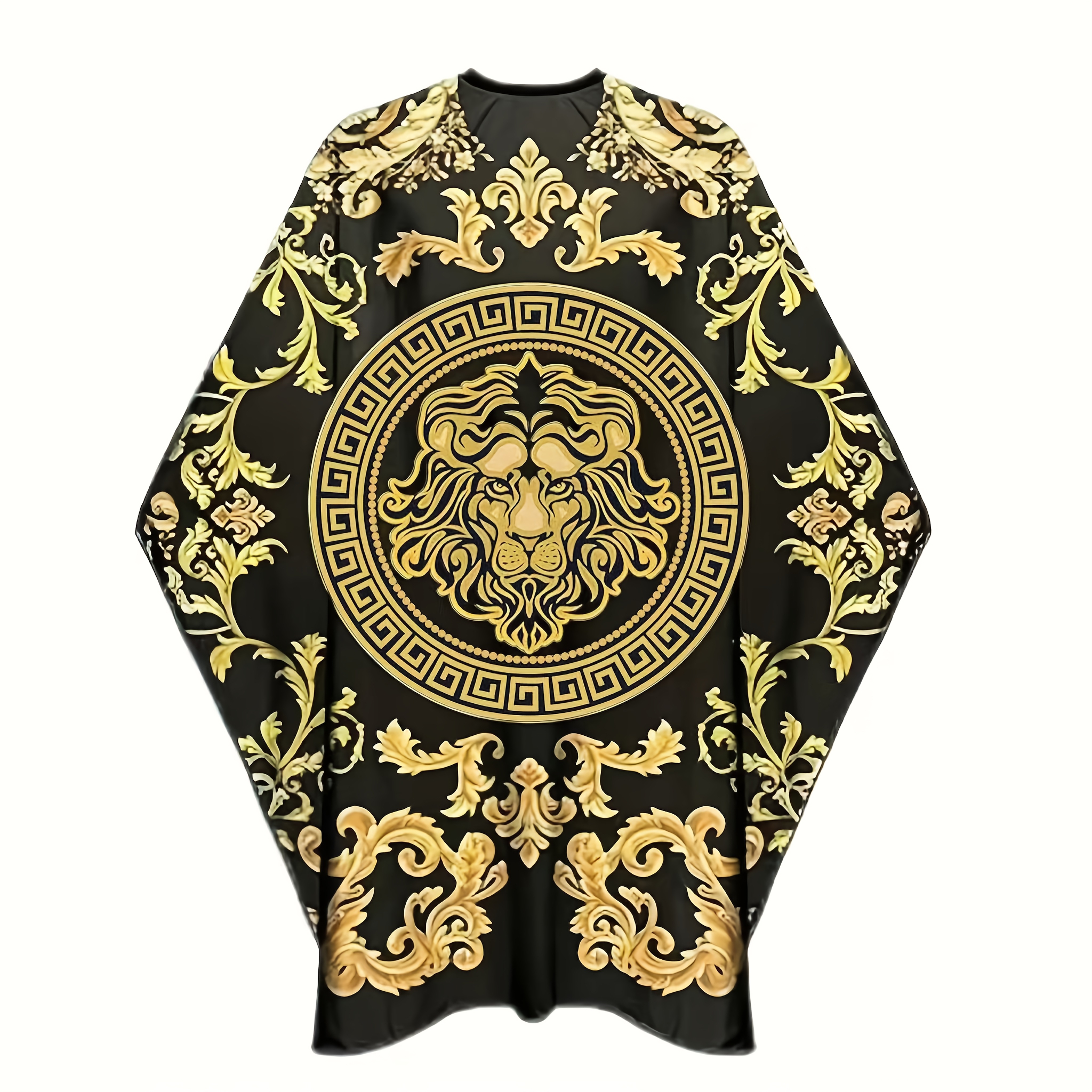 TEMU 프로페셔널 골든 라이언 헤드 헤어 케이프 - 논스틱 방전 대형 살롱 바버 체어 케이프, 헤어컷, 면도 및 오일 트리트먼트용 - 라이언 헤드 바버링 실드