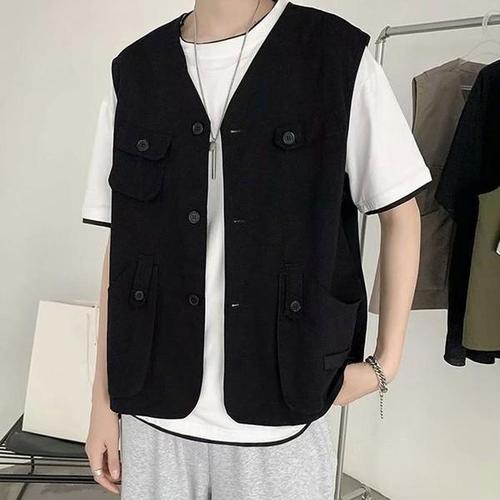 [다잇템][다잇템] 남자 힙스터 주머니 V넥 조끼 아메카지 조끼_15898054_588872