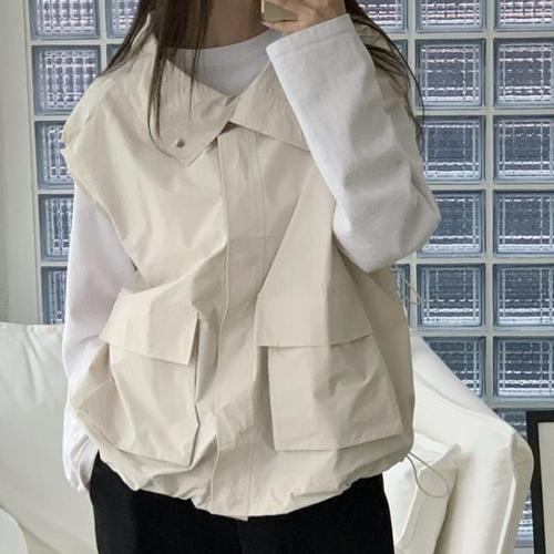 [옷자락]여자 주머니 카라 드로우코드 베스트 SS 아메카지 환절기 점퍼