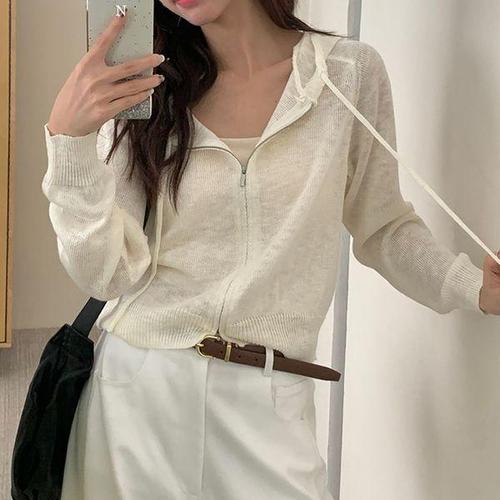 [에이치플러스몰]미스아미 여름 니트 후드 집업 가디건