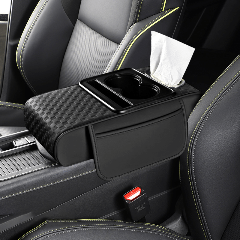 TEMU 고급 PU 가죽 차량 암레스트 높이 패드 컵홀더 & 티슈 보관함 포함 다기능 정리함자동차용 다기능 센터 콘솔 쿠션 PU 가죽 미끄럼 방지 패드 컵 홀더 및 종이 보관함 포함 4계절에 적합한 SUV 트럭 범용 선물