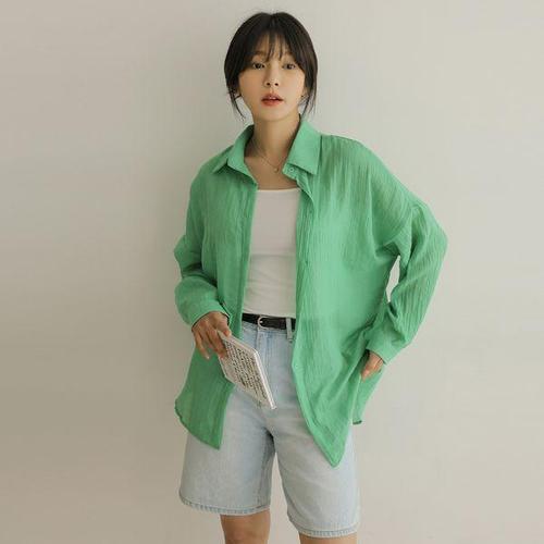 여름 커버업 아사면 시스루 레이어드 오버핏 셔츠 (WFHNXRV)