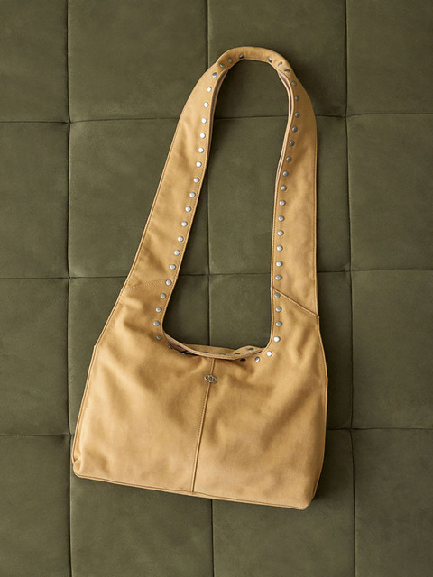 [아떼 바네사브루노 백] [MARON SOFT] 베이지 스웨이드 패브릭 스터드 숄더백 M AABA6E471W1