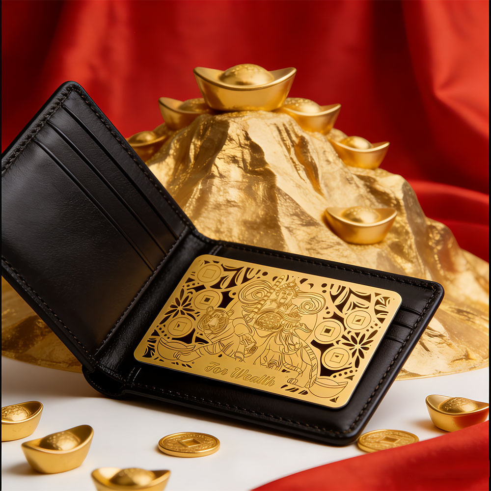 TEMU 5방향 부자 신 황금 카드 | 재물 만들기 운세 카드, 부와 축복, 항상 휴대, 돈 즉시 | 호랑이 탄 부자 신 황금 카드 | 전통 스타일, 구리 재질