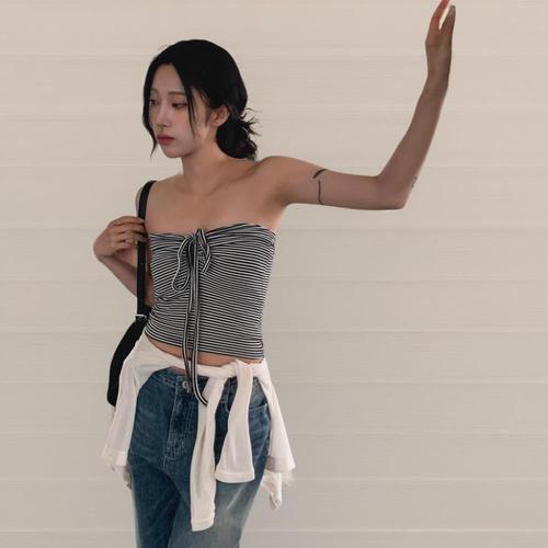 [미라클세븐]여성 힙무드 스트라이프 셔링 이너 나시탑