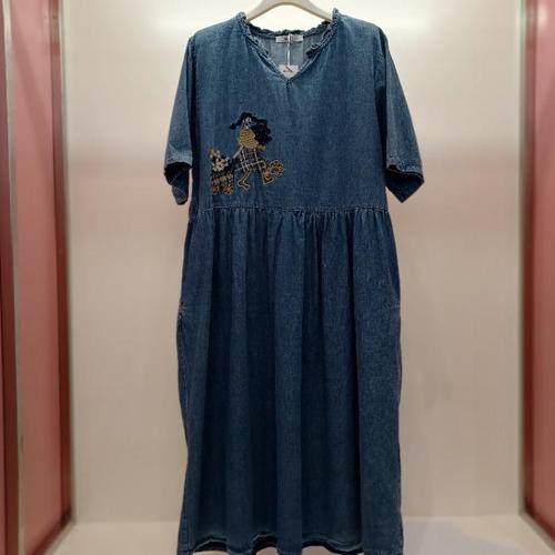 [라티움]Destijl HC06 데님 레이스넥 주머니 5부반팔 자수 소피아 연청 원피스 D2523op19 (33550857)