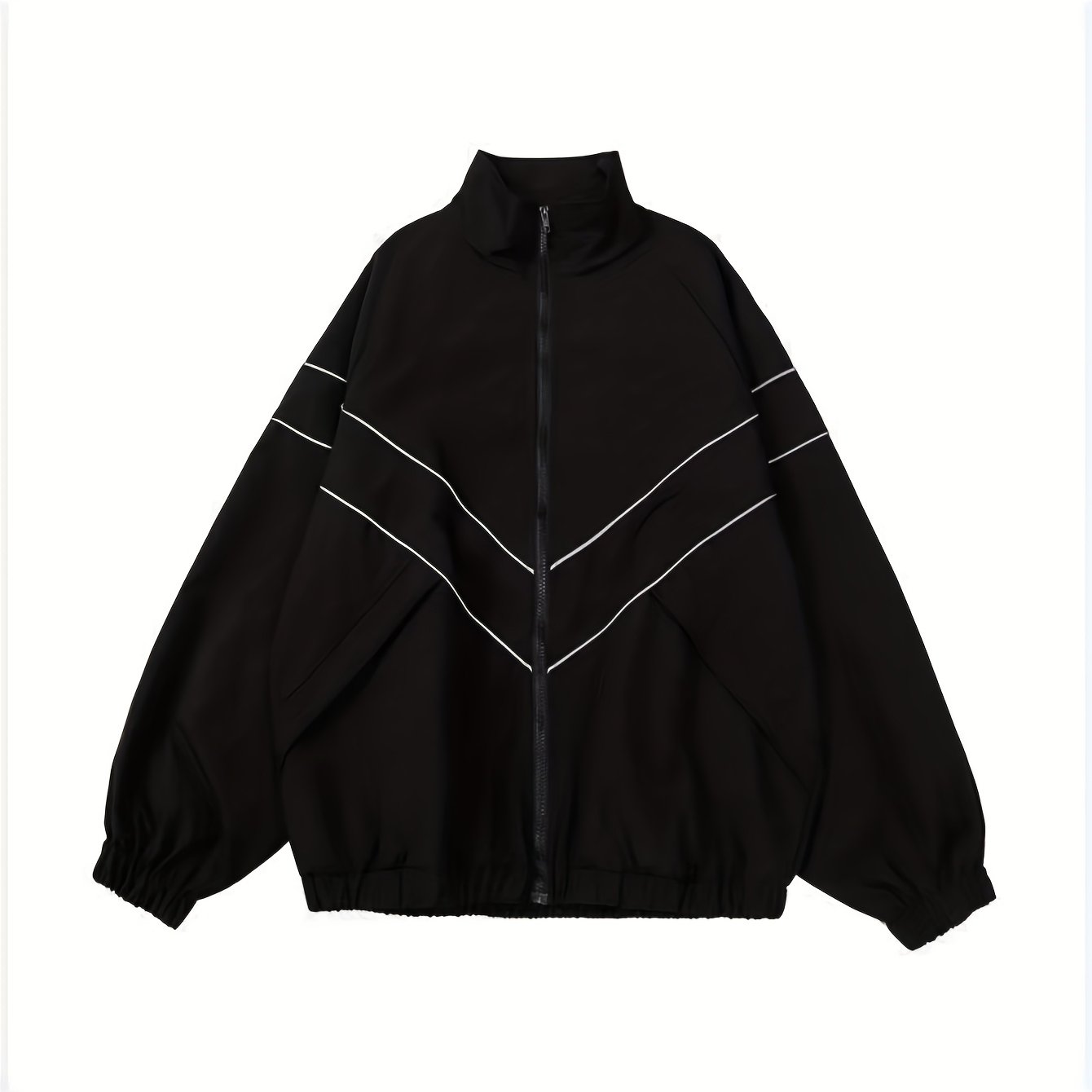 TEMU 야외 레저 스포츠 재킷 - 반사 스트라이프와 스탠드업 칼라