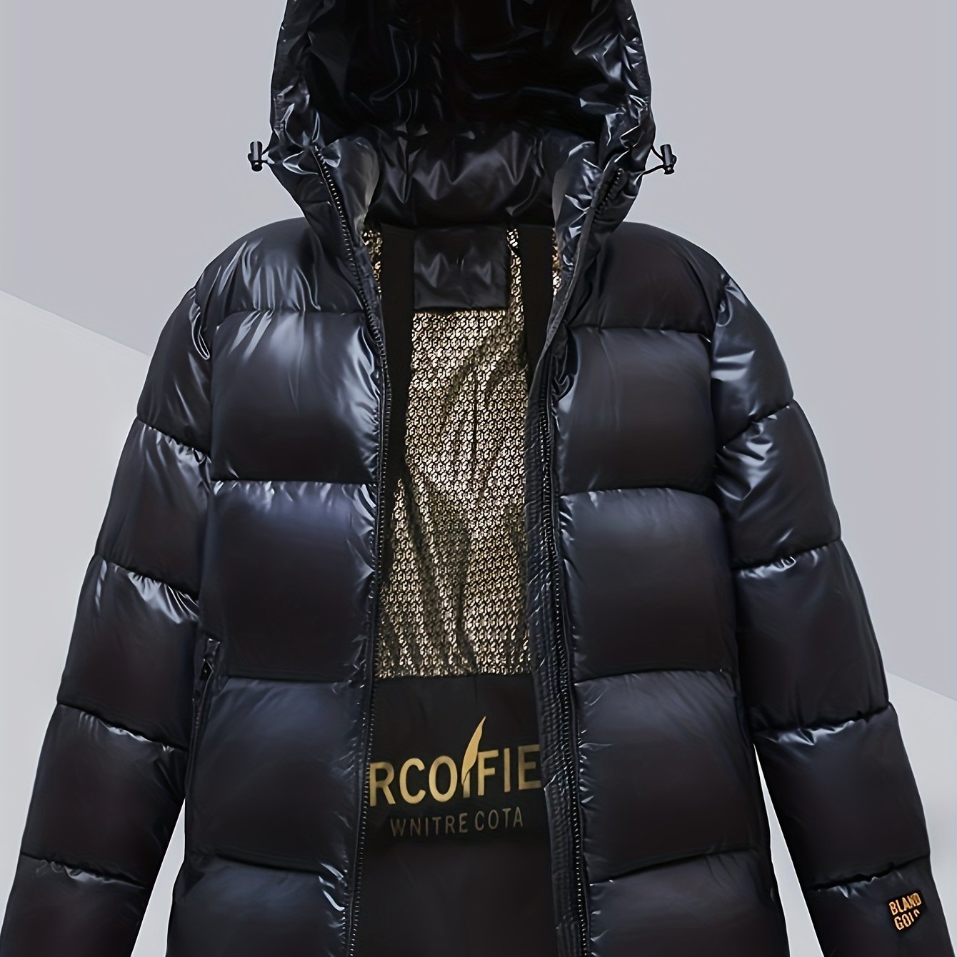 TEMU 여성용 패션 레귤러핏 루즈핏 블랙 후드 패딩 코트 - 두꺼운, 방풍, 따뜻한 겨울 재킷 지퍼 클로저, 아웃도어 캐주얼 웨어, 날씨용 아우터웨어 - 스타일리시 겨울 스타일 - 따뜻하고 편안한 - 커플용 캐주얼 패딩 코트