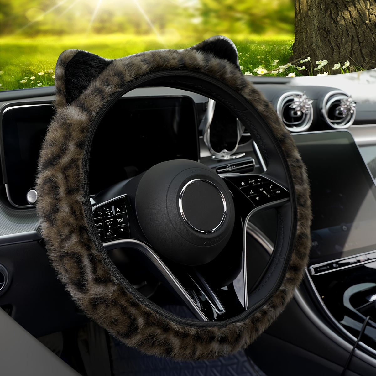 TEMU 1개 플러시 스티어링 휠 커버 - 대부분의 차량 호환, 부드럽고 따뜻한 겨울용, 미끄럼 방지 그립, 내부 링 없음, 쉬운 설치, 14.57-14.96cm 스티어링 휠 직경 적합 (차량 내부 액세서리)