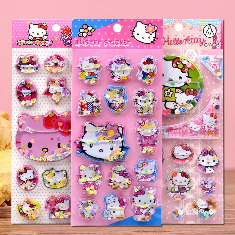 산리오 헬로키티 스티커 만화 3D 입체 크리스탈 스티커 DIY 휴대폰 케이스 물컵 장식 소년 소녀 보상 포스트