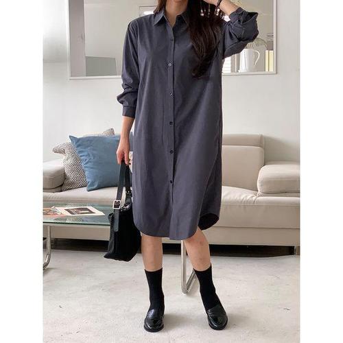 [샵앤]여성 카라 롱셔츠 무릎기장 원피스 21DS-WDR-4890-아이보리