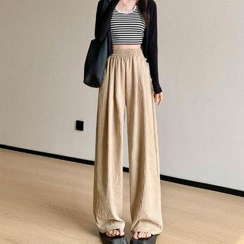여성 여름 고무줄 스트레이트 아이스 실크 봄가을 9부바지/빅사이즈/슬랙스/50대/면/통바지