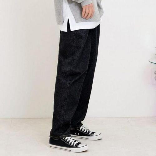 [에이치플러스몰]청바지 배기 뽀얌 핀턱 오버핏 블랙 데일리