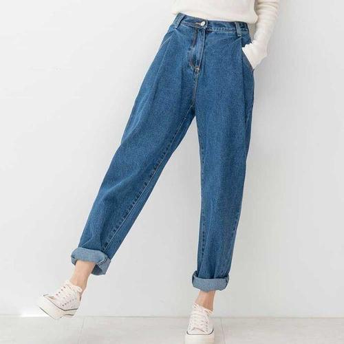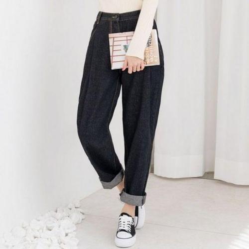 [에이치플러스몰]핀턱 오버핏 배기 청바지 면100% 롤업 뒷밴딩 캐주얼