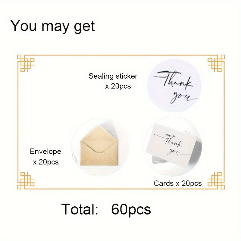 TEMU 60팩 우아한 감사 카드 세트 (봉투 & 스티커 포함) - 두꺼운 종이, 접착식 클로저, 개인 메시지용 빈 공간 - 비즈니스, 베이비 샤워, 사무실 및 특별한 날에 완벽