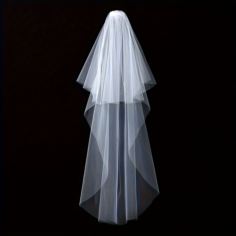 TEMU 55.12인치의 화이트 브라이덜 베일, 더블 레이어 디자인과 빈티지 테마가 특징이며, 우아하고 영원한 질감을 풍기며 웨딩 프로포즈에 완벽합니다.