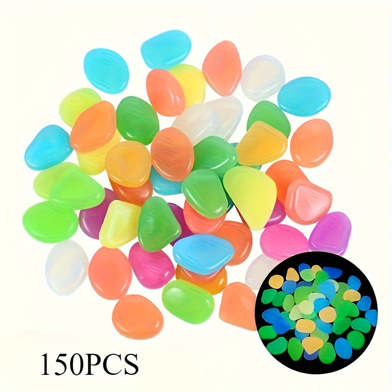 TEMU 야외 공간, 정원, 마당, 파티오, 어항, 산책로 및 통로를 향상시키기에 완벽한 어둠 속에서 빛나는 초대형 야광석 150개입. 수족관, 도로, 결혼식 장식 및 프로젝트에 이상적입니다.