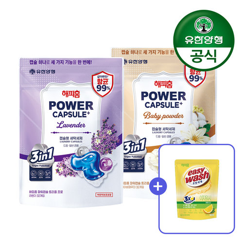 [유한양행] 해피홈 트리플 파워캡슐 프로 세탁세제 32캡슐 2팩+증)이지워시 200ml