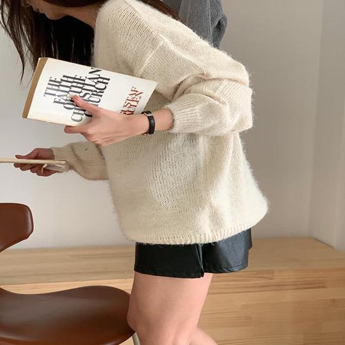 [옷자락] [시즌오프]간절기 이너 모헤어 앙고라 루즈핏 브이넥 니트_5