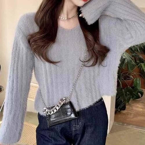 여성 겨울 앙고라 크롭 기장 긴팔 니트 배꼽티 4color