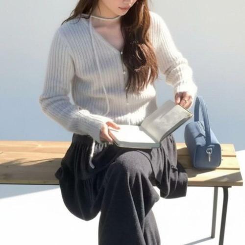 [셀럽하우스]앙고라 IEGQ3678 세로 브이넥 세미크롭 긴팔 니트 스웨터