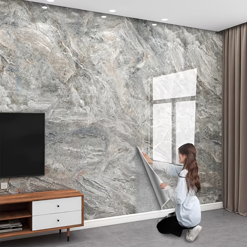 TEMU 52/104개입 고급 빈티지 마블 패턴 자가 점착 벽지, 끈적임 없는 비닐 벽 스티커, 간편한 부착 및 제거, 재단 가능, 방수 및 방유 벽 패널, 일상적인 관리가 용이