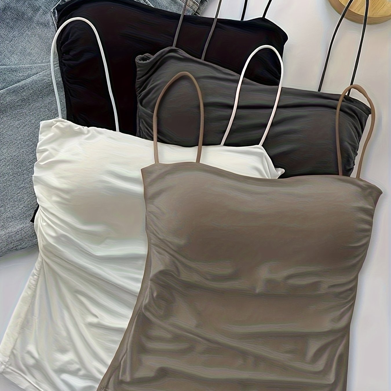TEMU 4개 여성용 허리 주름 디자인 섹시 캐미솔, 탄성 있는 편안한 스트랩리스 브라 (탈착 불가능한 패드 포함), 모든 행사 선물용 필수품, 여성 캐미솔 백리스 슬림핏 스타일 고급스러운 필수템 - 범용 크리스마스