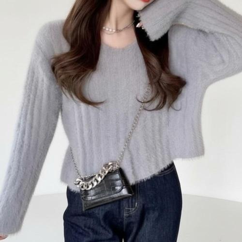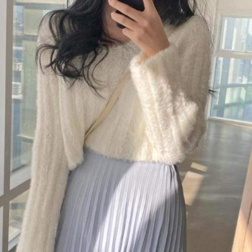 [셀럽하우스]여성 ELHJ9783 겨울 부드러운 앙고라 라운드넥 긴팔 크롭 니트