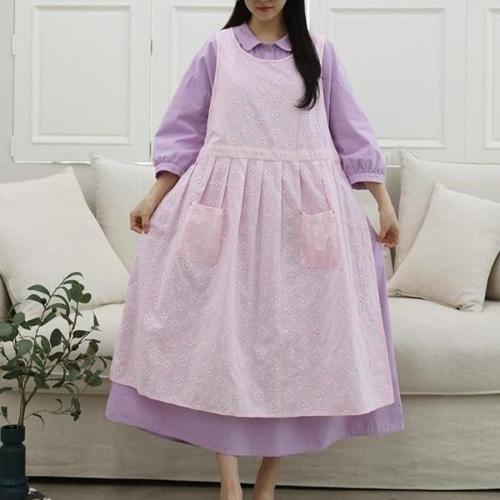 청년리빙 꽃무늬 프릴 원피스 앞치마
