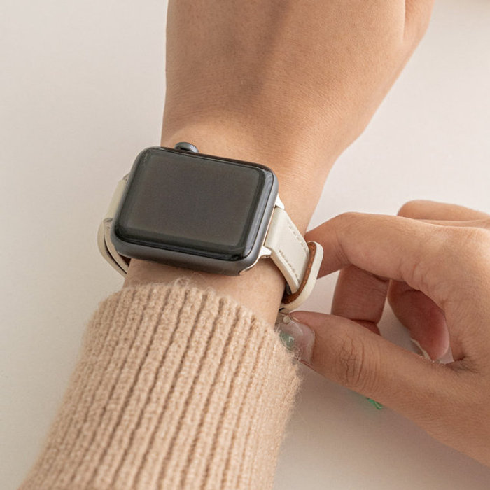 [에가든] 애플워치 가죽스트랩 슬림 7 6 5 4 3 2 1 SE 전기종 호환 (미모사)