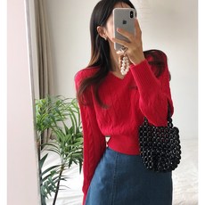 체리쉬 브이넥 꽈배기 숏 니트 5color