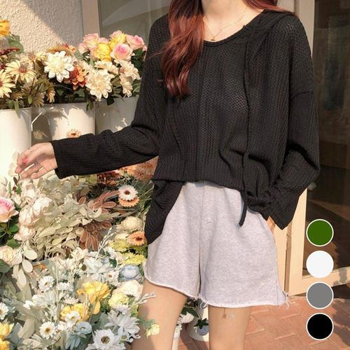 여성 와플 후드 루즈핏 얇은 여자 후드티셔츠 WE38EE2