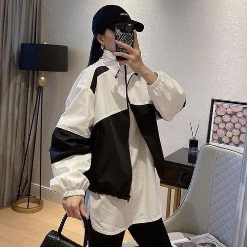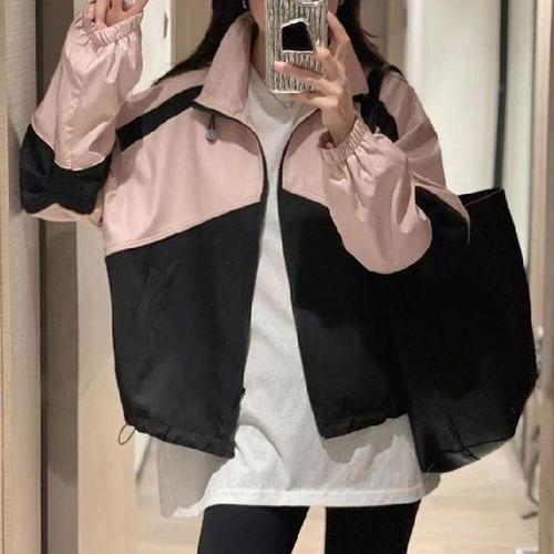 [셀러허브_여성트랜드패션]여성 바람막이 크롭기장 점퍼 배색 자켓 얇은 간절기