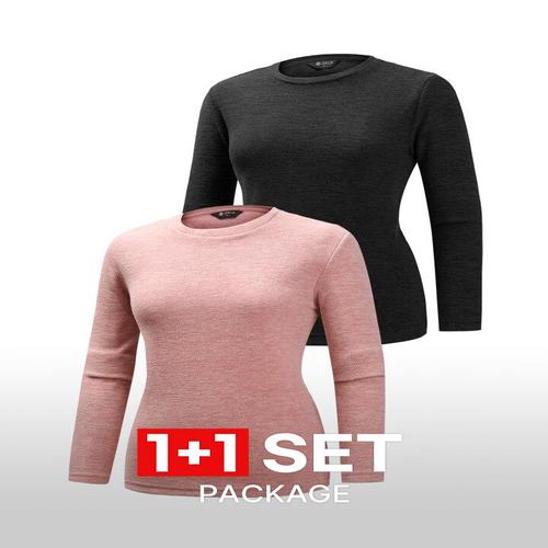 [이지바이]1+1 투엘라 여성 포근라운지 겨울 양기모 긴팔 라운드 티셔츠(W6OPWT14)
