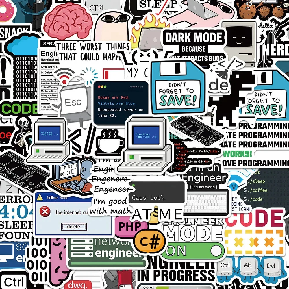 10/50PCS 재미 있은 프로그래밍 Meme 스티커 Java JS Php Docker Html 클라우드 언어 데칼 컴퓨터 노트북 404 네트워크 오류 스티커