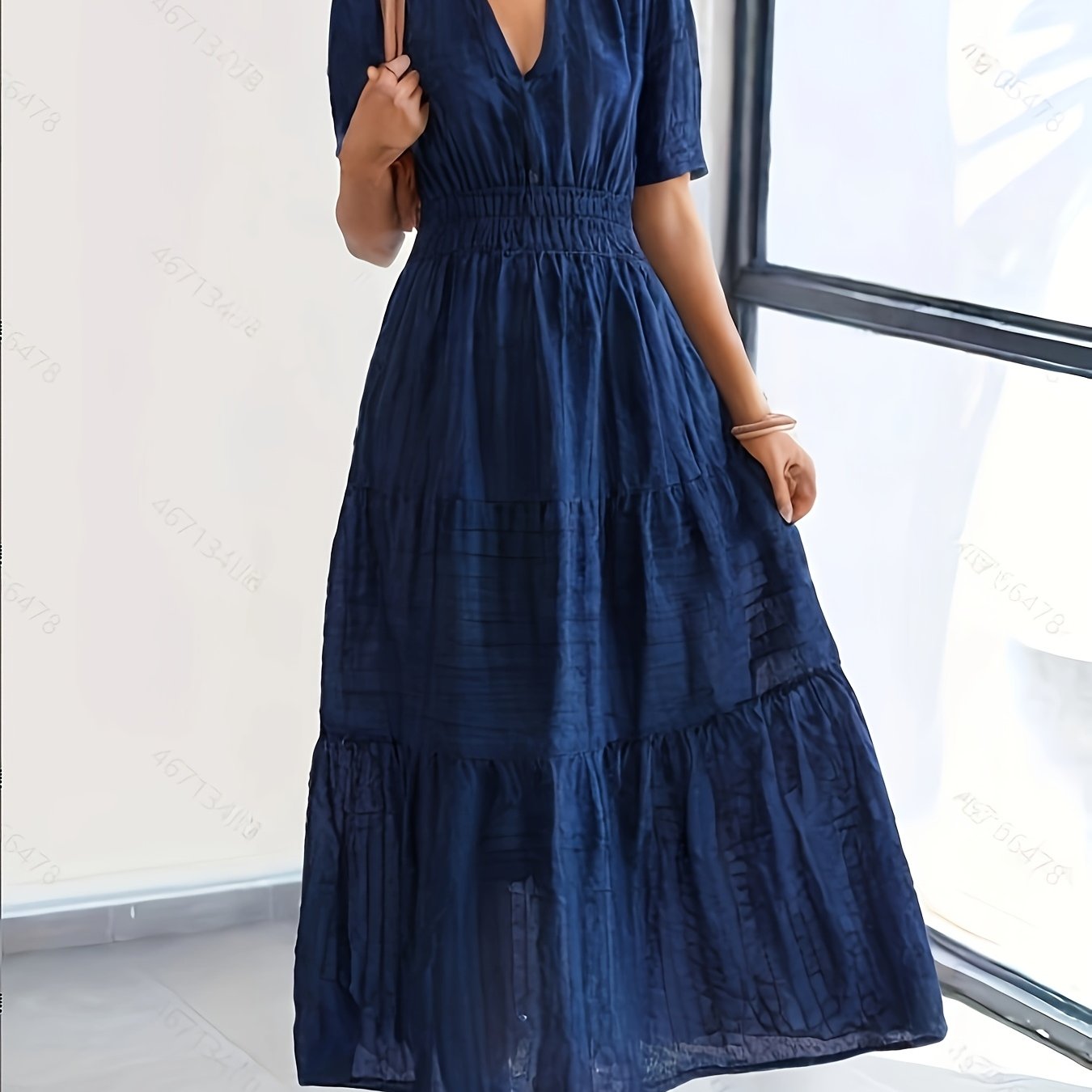 TEMU 여성 드레스, 세련되고 우아한 롱 드레스. 허리 라인을 강조하는 V넥이 특징이며, 세미 포멀 스타일입니다. 포멀하고 캐주얼한 모든 행사에 적합하며, 솔리드 컬러 드레스로 세탁기 사용이 가능하며, 사무실, 결혼식 또는 파티에 완벽합니다.
