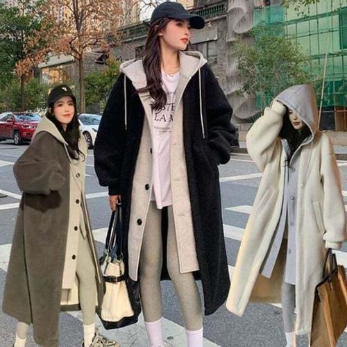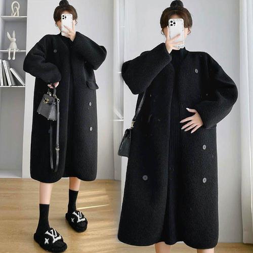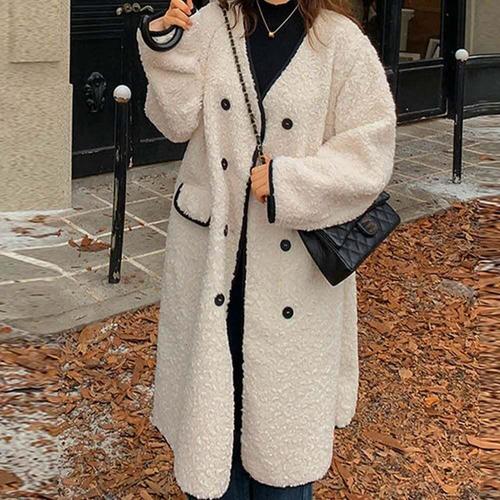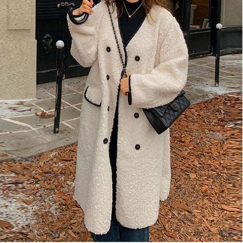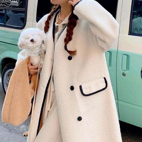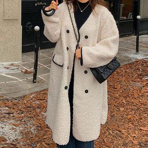 [셀럽하우스]여성 DLHY9085 캐주얼 단추 양털코트 겨울아우터 브이넥 롱코트
